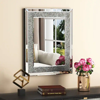 Glam Crystal Accent Wall Mirror Sparkly Silver Mirror - 20" x 16"