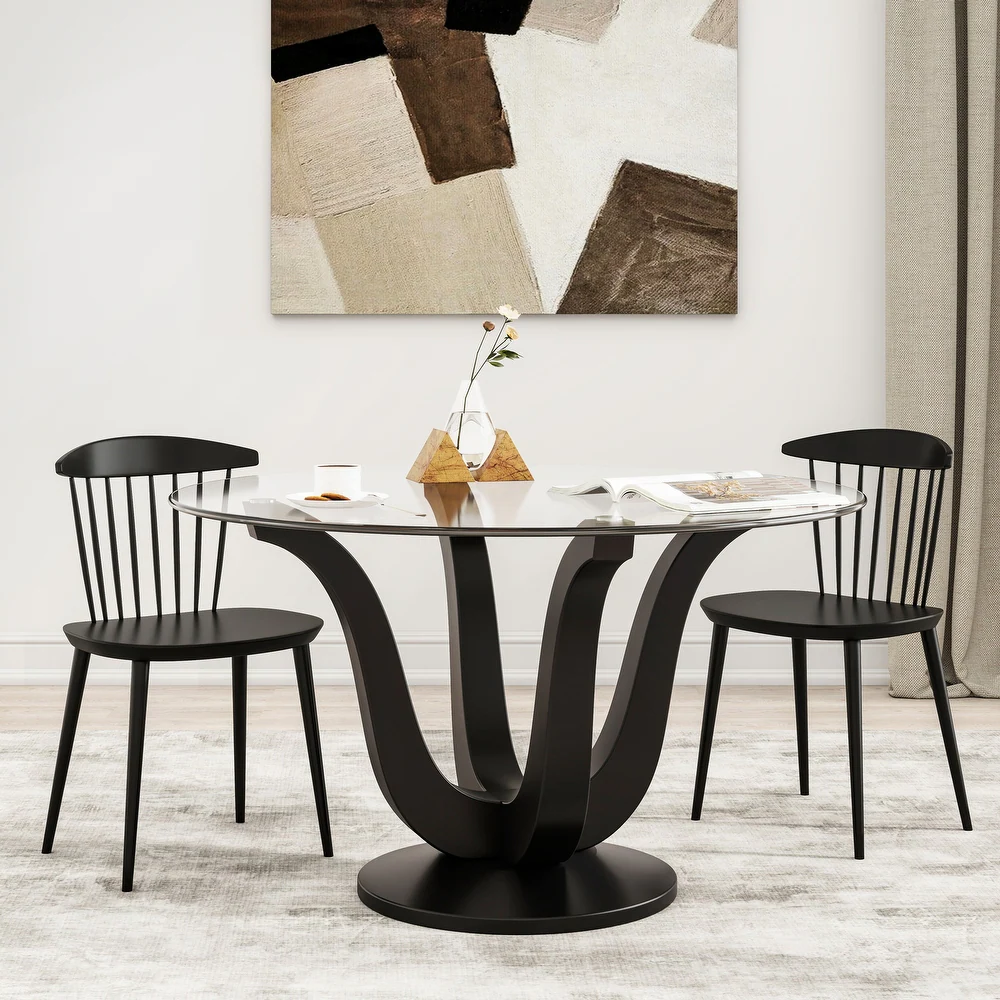 Round Glass Top Solid Wood Base Dining Table -51.18 in. W X 51.18 in. L X 29.53 in. H