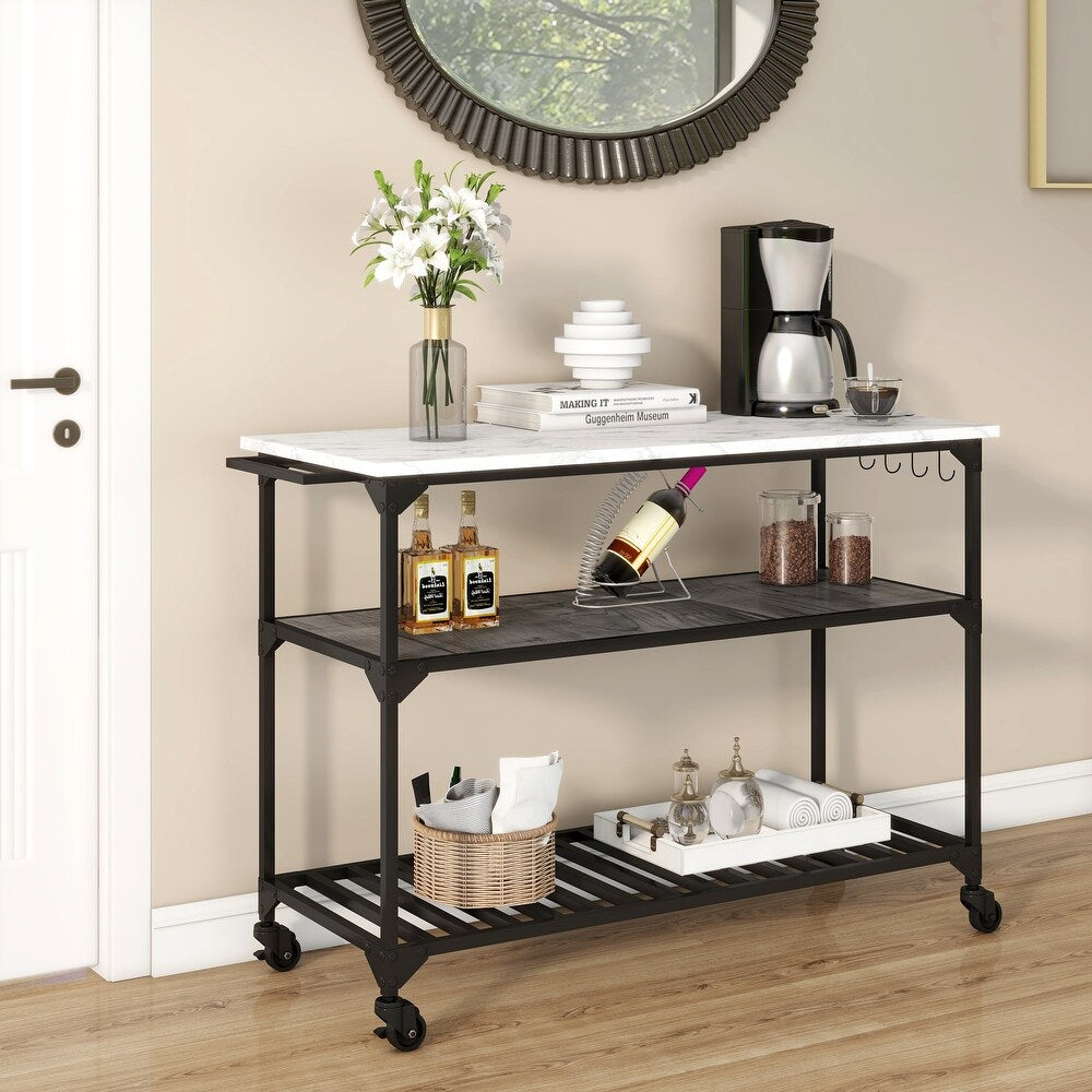 Shyfoy Contemporary Kitchen Island Bar Cart with Wheels