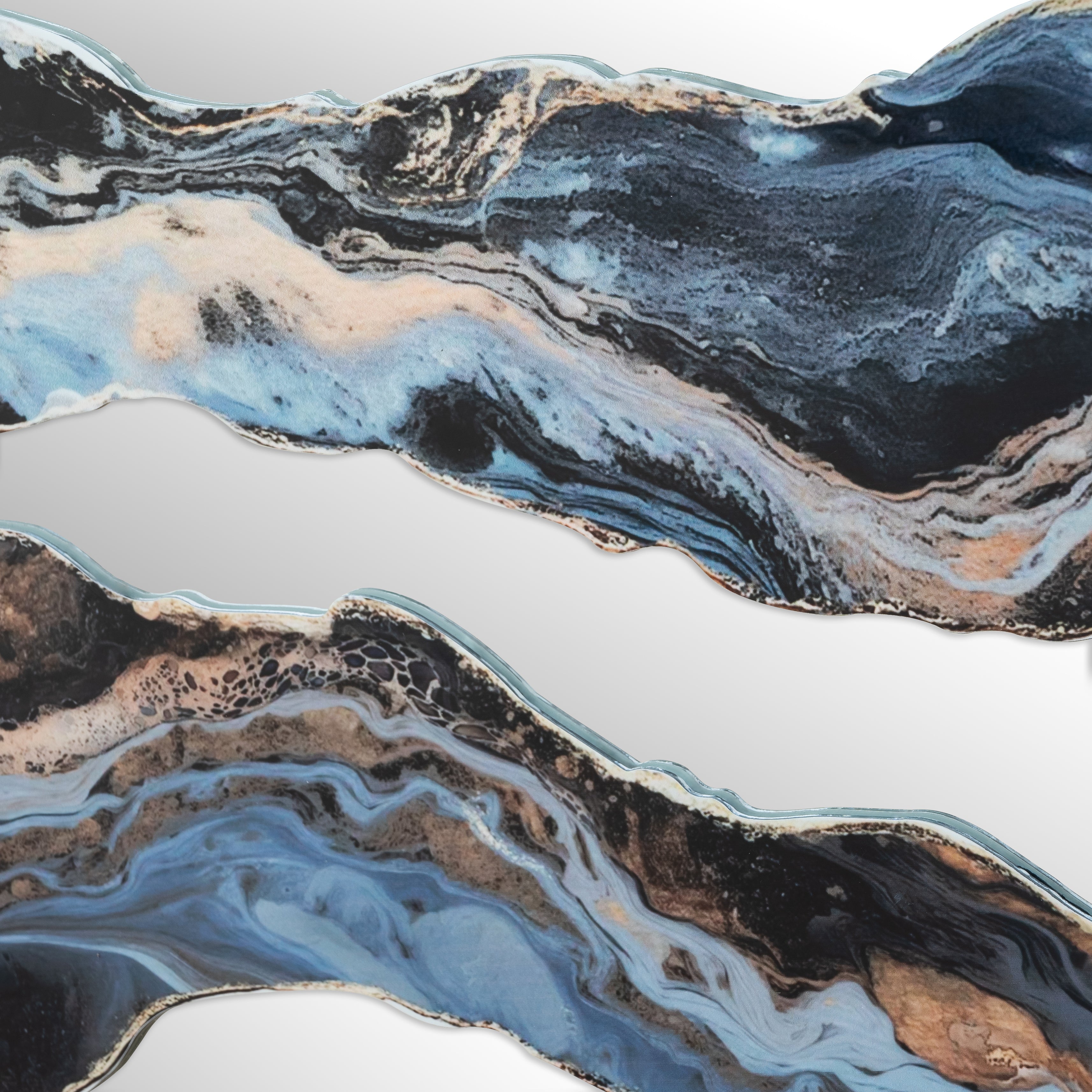 • Artistic Resin-Marbled Design with Gilded Detailing – Layered resin craftsmanship creates fluid, landscape-inspired swirls in charcoal, soft blue, and warm gold, enhanced by delicate gilded edging. This mirror doubles as standalone wall art, eliminating the need for extra decor while infusing your space with a luxurious, gallery-worthy ambiance.