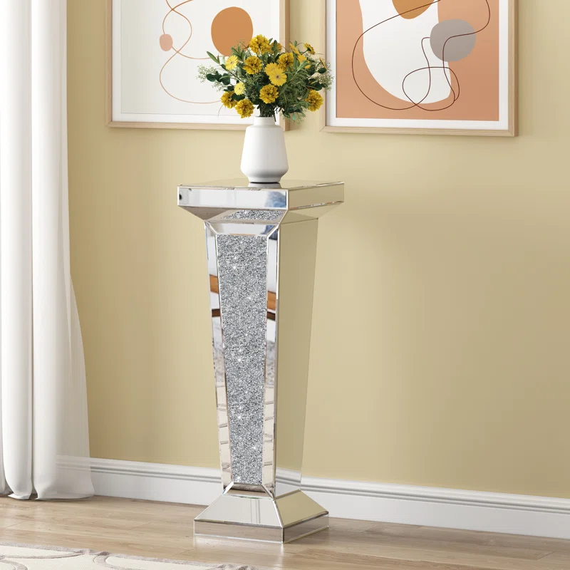Tall Pedestal Mirrored Glass Top End Table