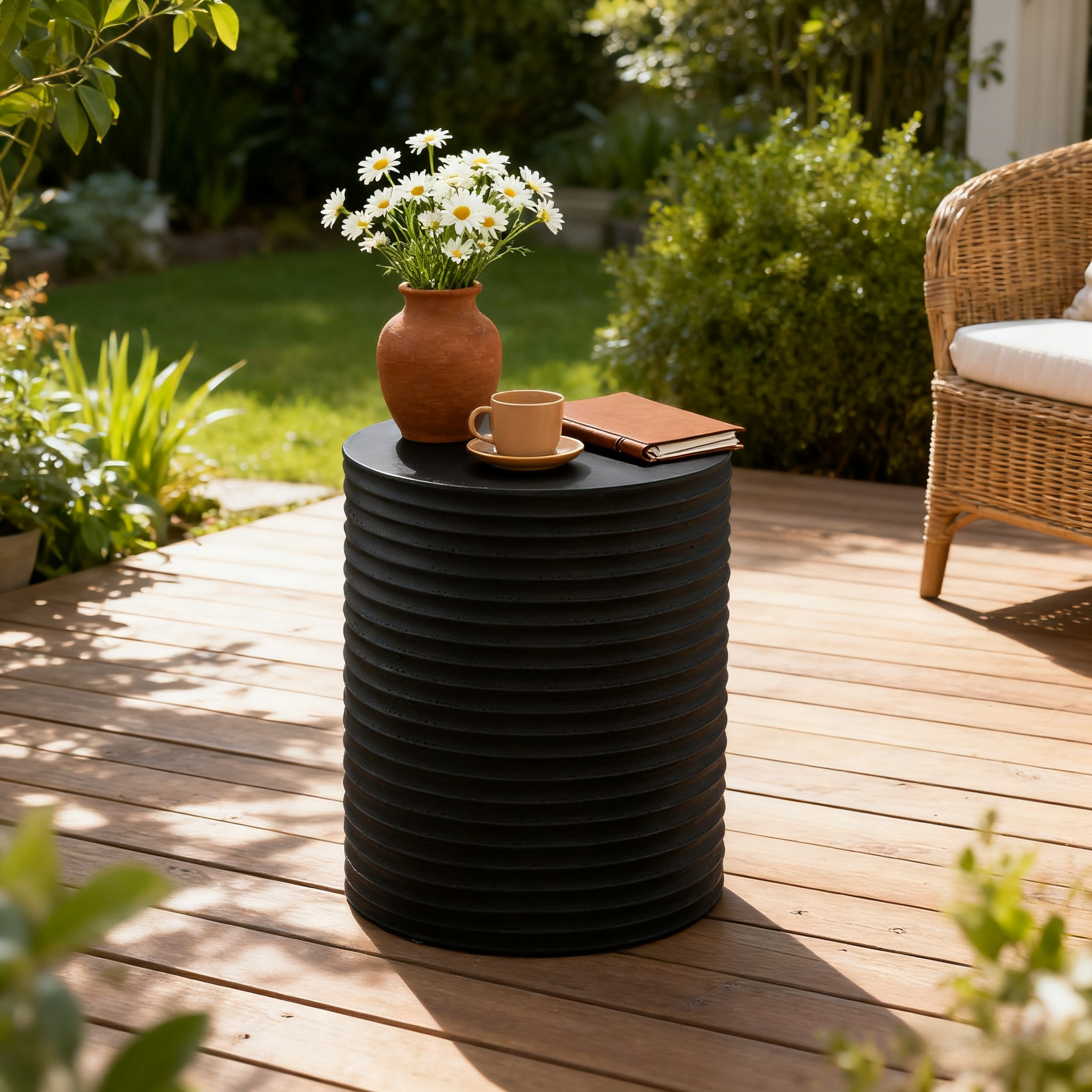 Modern Cylinder Side Table Minimalist Outdoor End Table, Cement Accent Table