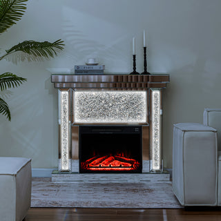 Electric Fireplace with Glass Mantel Surround, Crushed Diamonds inlay