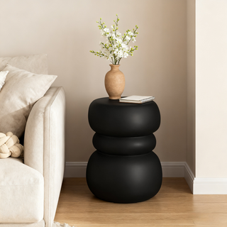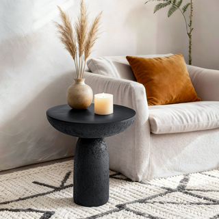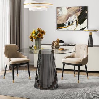 Blue Mirrored End Table, 23" H Round Glass Side Table with Three Legs