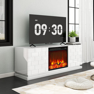Electric Fireplace 63" TV Stand - Modern Highgloss Media Console - White