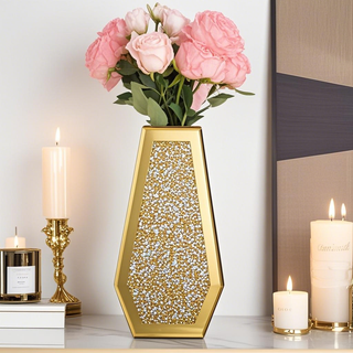 Flower Vase Rectangular Crushed Diamond Mirrored Vases for Centerpiece