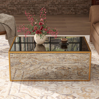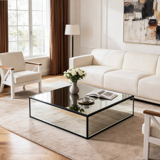 Nightstand Mirror Glass Top with Wireless Charging Station LED Light