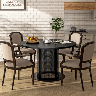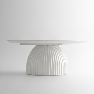 Modern Round Coffee Table with Ribbed Black Base – Minimalist Living Room Accent