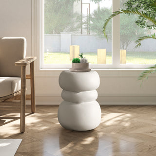 Modern Outdoor Side Table, Sculptural Patio Accent Table, White Concrete Look