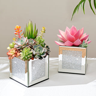 Round Glass Top Silver Accent Table Decor With Crushed Diamond Coffee Table