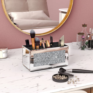 SHYFOY Crushed Diamond Three Compartments Deluxe Cosmetic Makeup Beauty Organizer