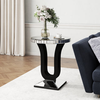 SHYFOY Mirrored End Table with Crystal Inlay, Round Modern Side Table Silver Accent Table
