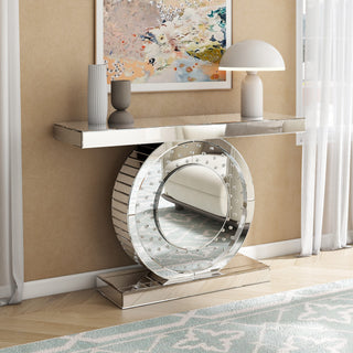 SHYFOY Mirrored Console Table,Silver Entryway Table with Line Design Mirror Finished