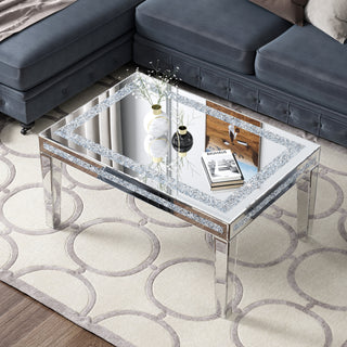 SHYFOY Coffee Table Mirrored with Crystals Inlay, Modern Contemporary Coffee Table