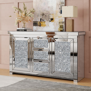 SHYFOY Mirrored Accent Silver Nightstand Bedside Table with 3 Drawers
