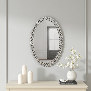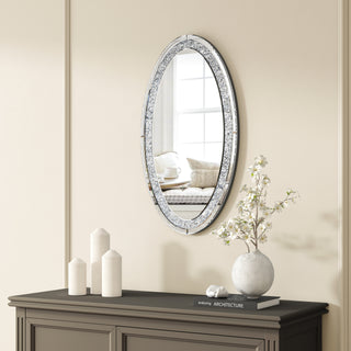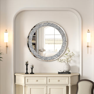 SHYFOY Round Large Mirror Crushed Diamond Wall Mirrorfor Living Room 32IN Silver