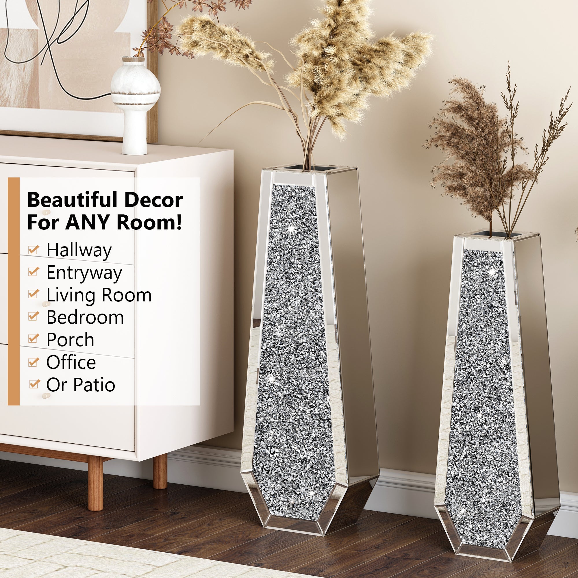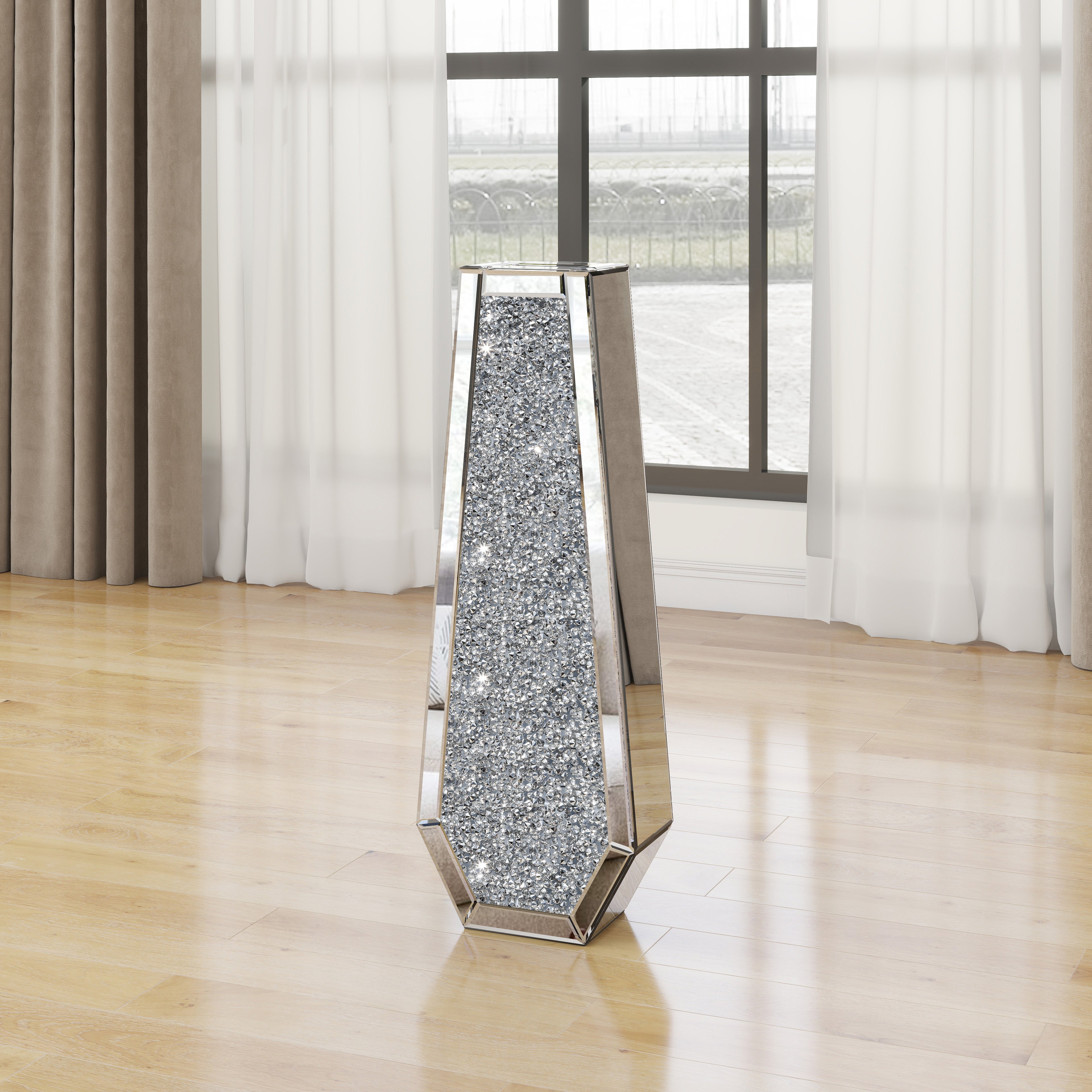 30" IN Large Silver Mirror Crystal Vases Crushed Diamond Tall Floor Vase