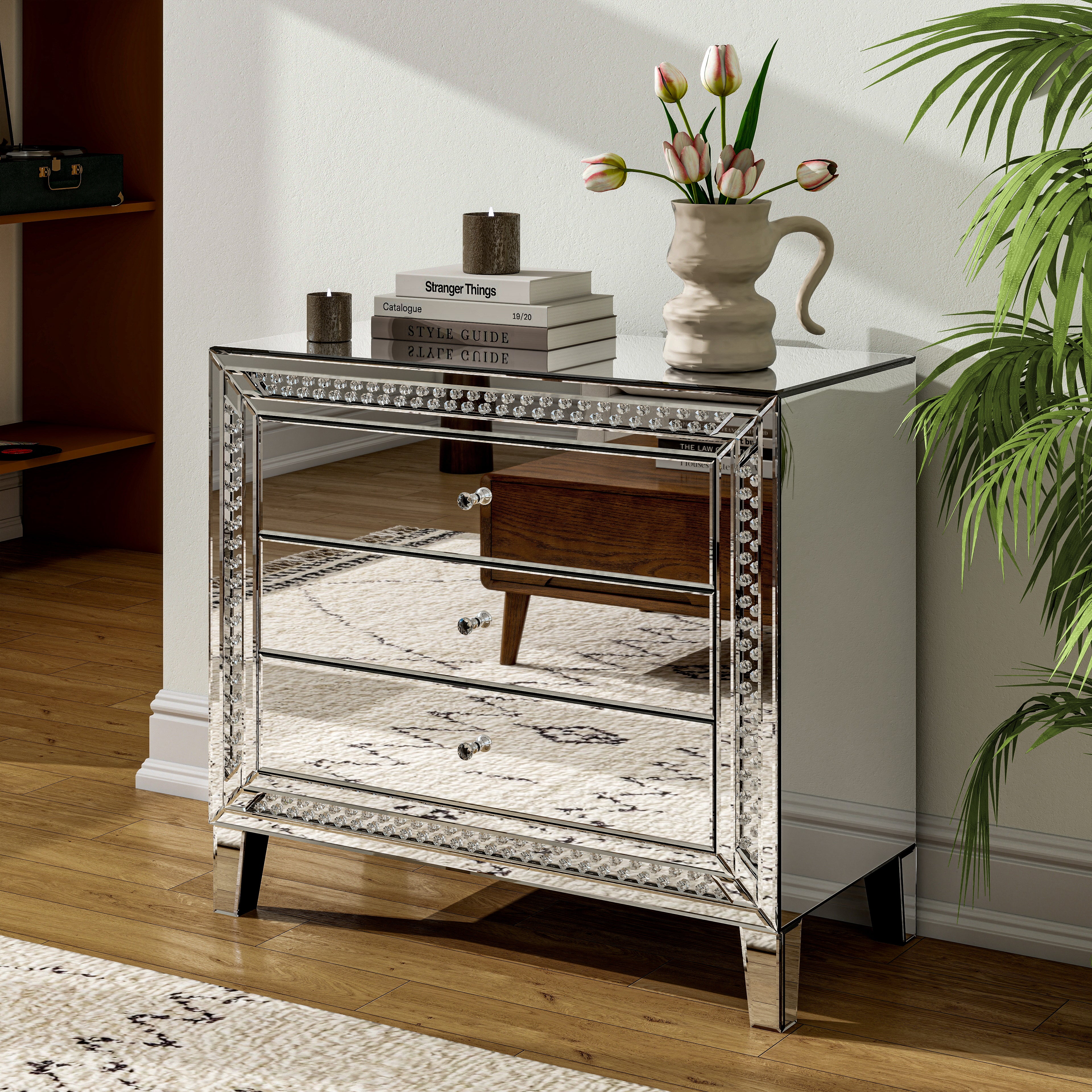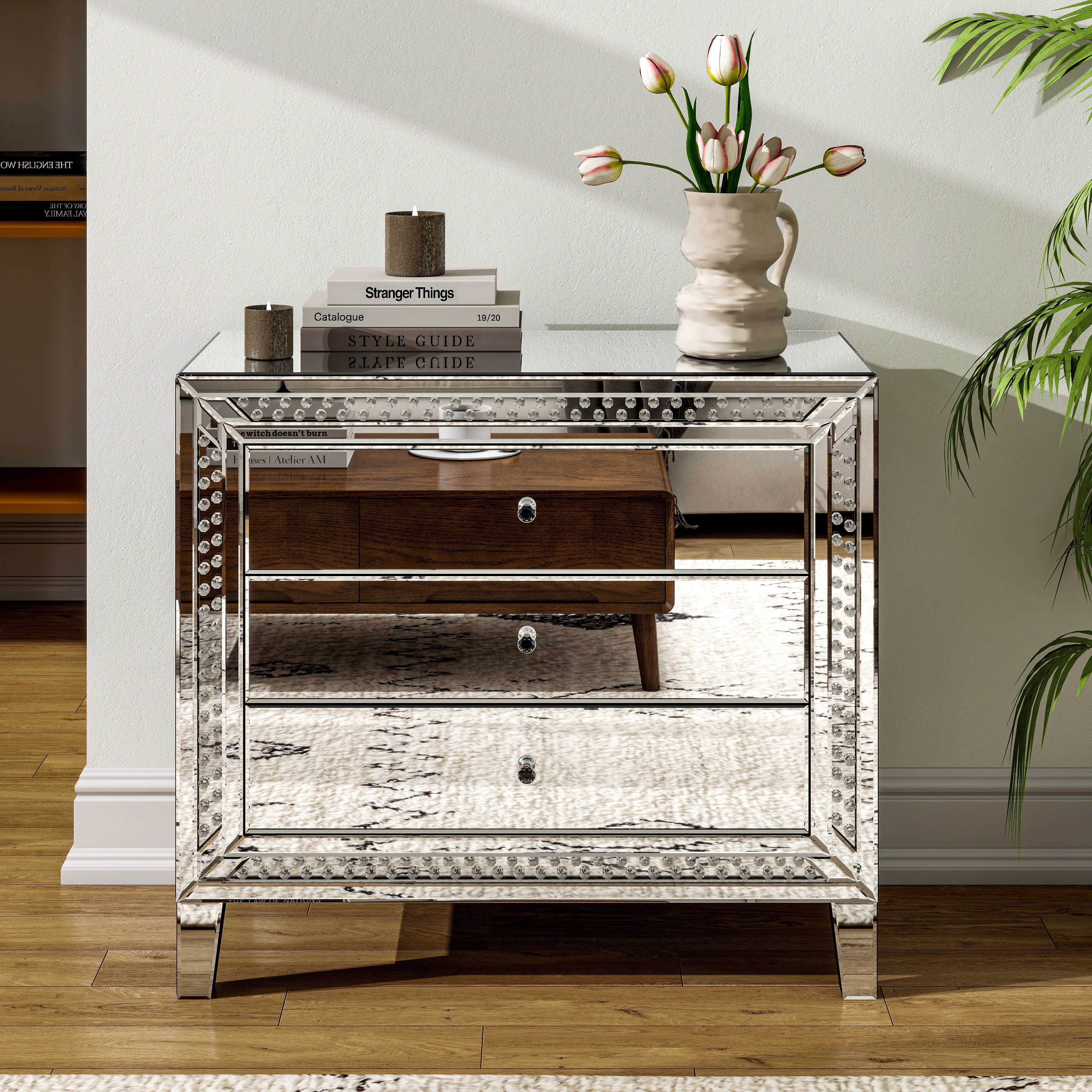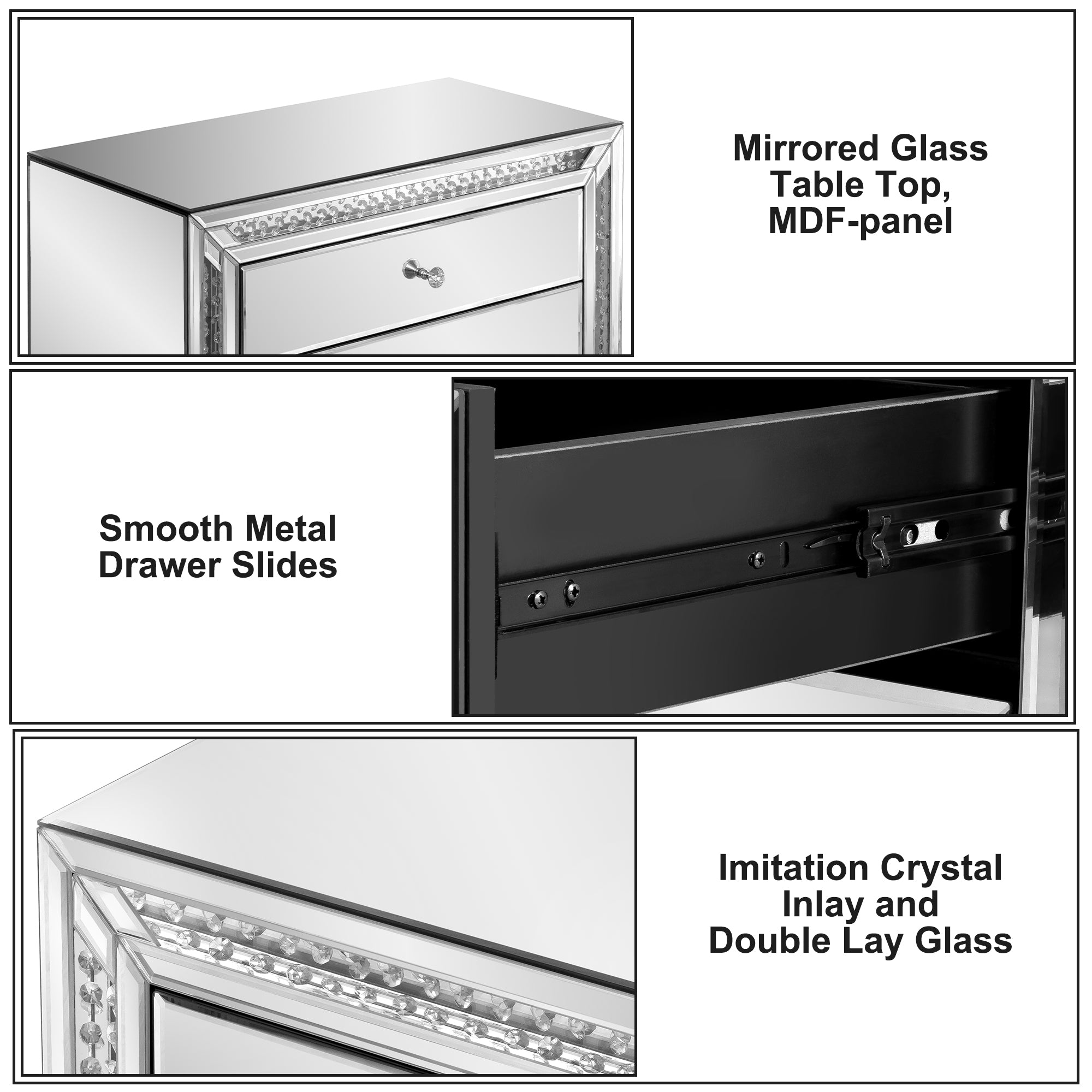 - Effortless Organization & Clutter-Free Space: Tired of messy bedside essentials? Our mirrored nightstand features three spacious drawers, perfect for storing books, accessories, and bedtime essentials. The smooth glass surface is easy to clean, so you can maintain a spotless, stylish look effortlessly.