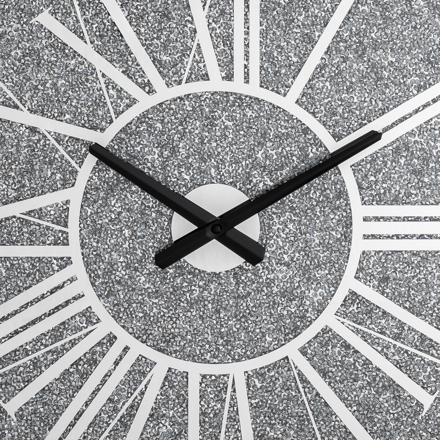 Details:Add dazzling sophistication to your home with our stunning 23.62-inch Crushed Diamond Silent Wall Clock. Available in both square and round designs, this easy-to-hang timepiece features brilliant crushed diamond detail, elegant Roman numerals, and a silent non-ticking mechanism. Its sleek MDF backboard ensures both durability and a refined aesthetic for any space.