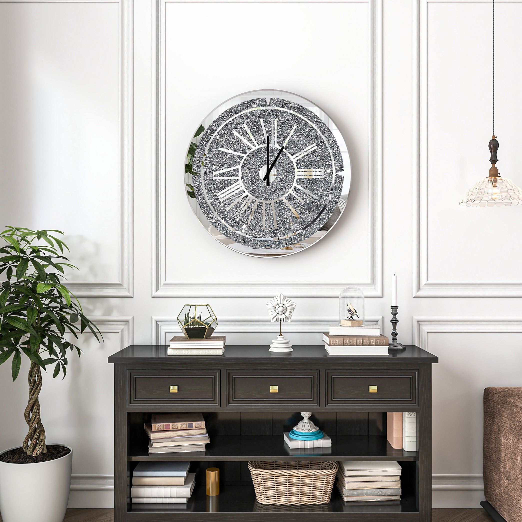 - Dazzling Crushed Diamond Finish: Elevate your decor with a captivating crushed diamond surface that sparkles, making this stylish time teller a true statement piece.