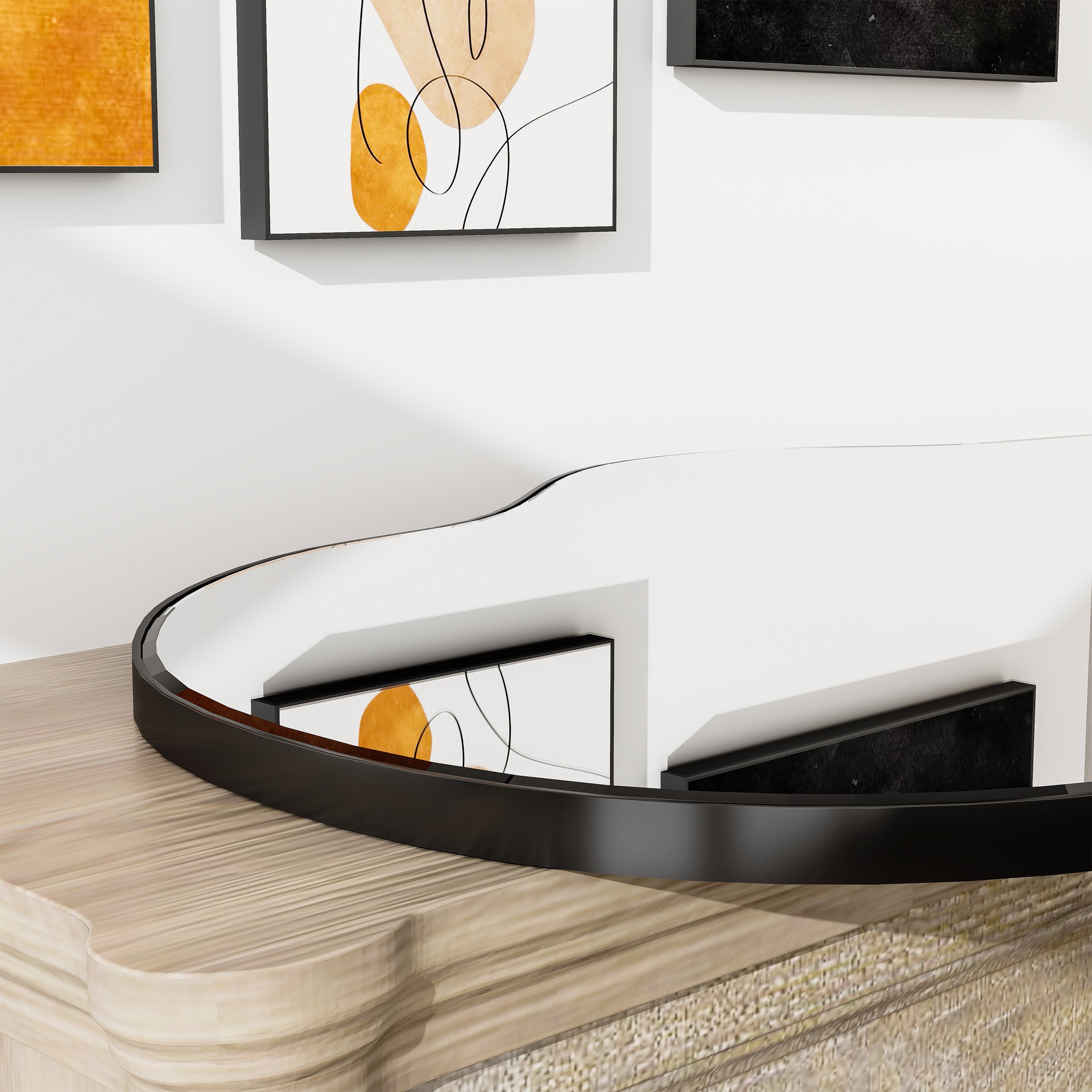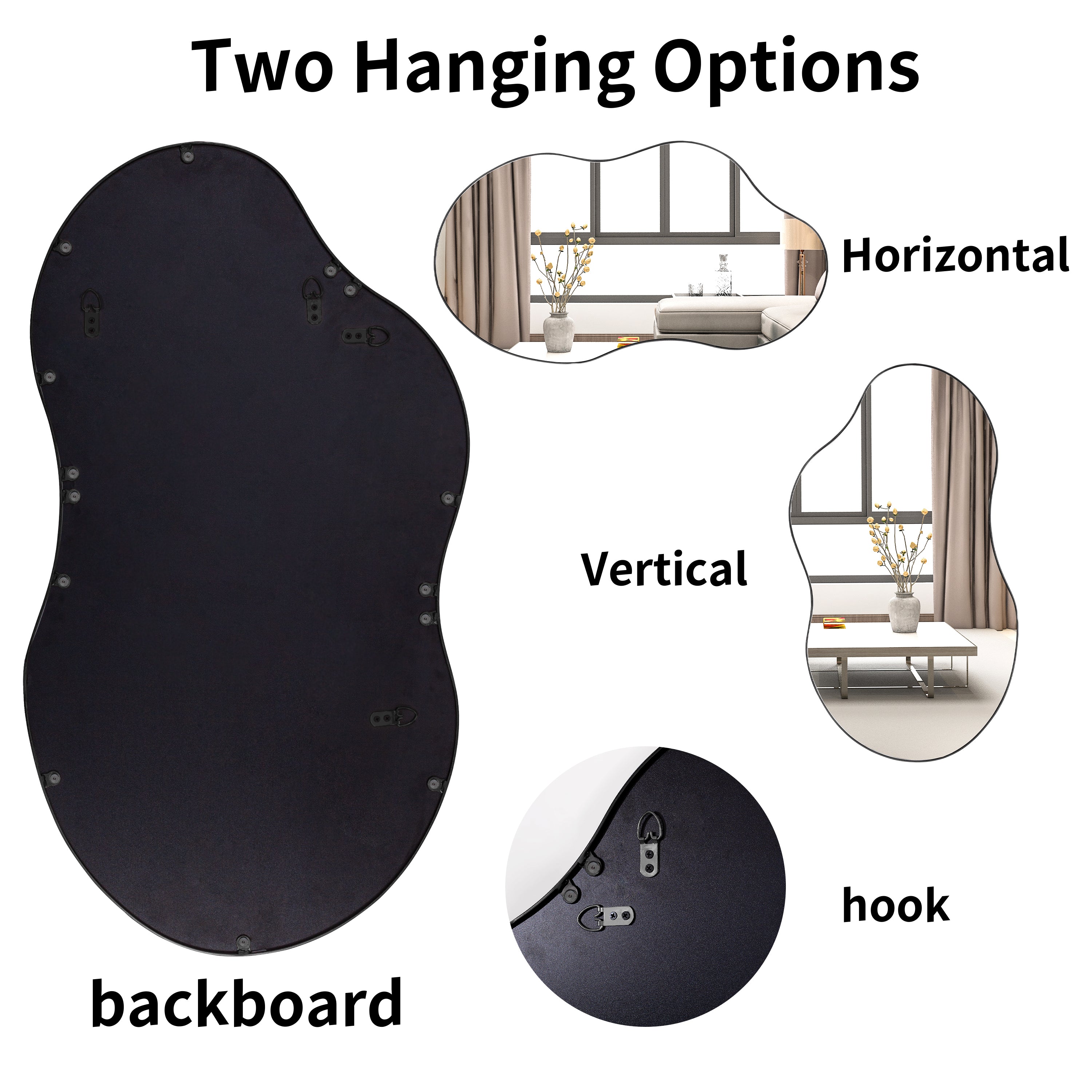 • Asymmetrical Design:This irregular wall mirror design has unique lines and it is a gorgeous decorative piece in a modern style home.This modern mirror can improve the beauty and art of space,suitable for living room,entrance hall, walkway, bedroom.