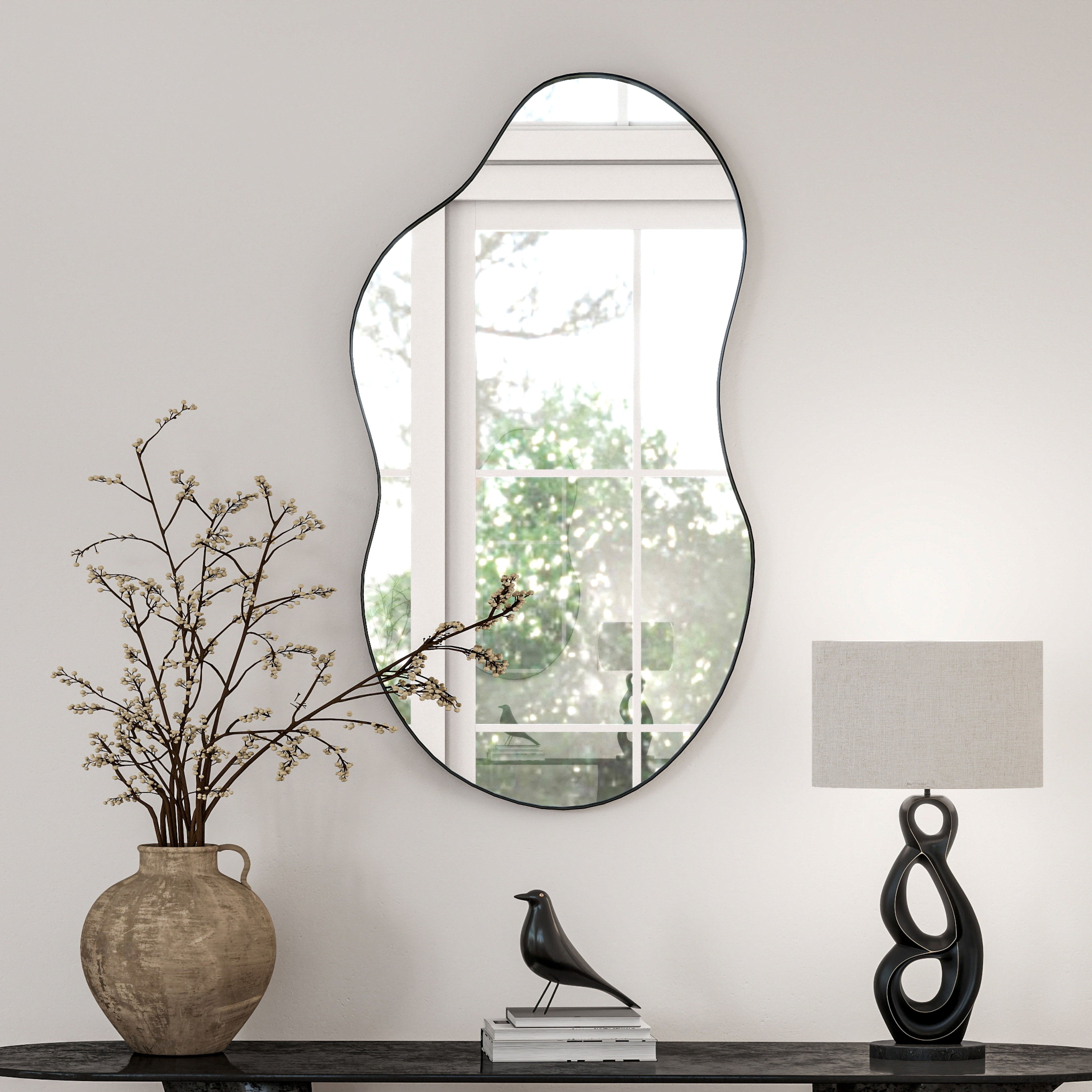 SHYFOY 35.8" Black Asymmetrical Cloud Shaped Wall Mirror