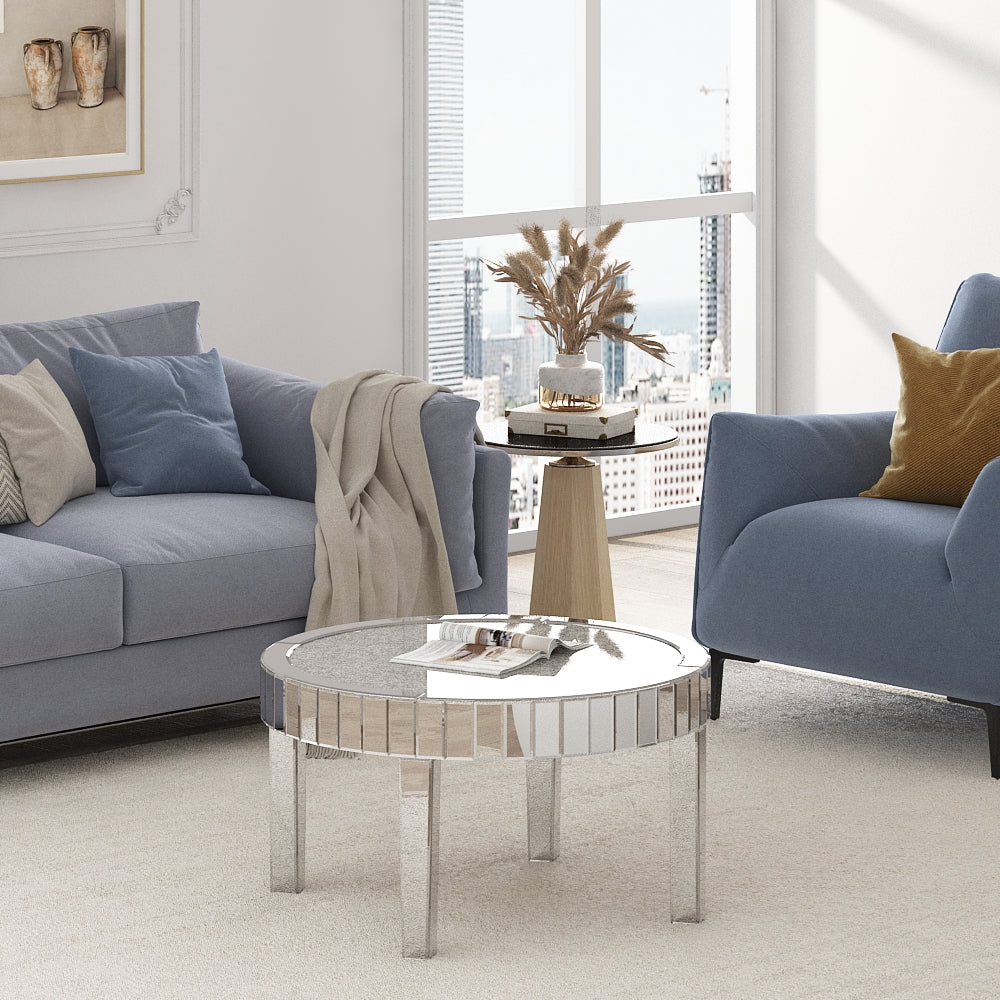 【Visually Magnifies the Space】The mirrored and diamond-inlaid surface of the coffee table can reflect light and make the room appear brighter and more spacious.