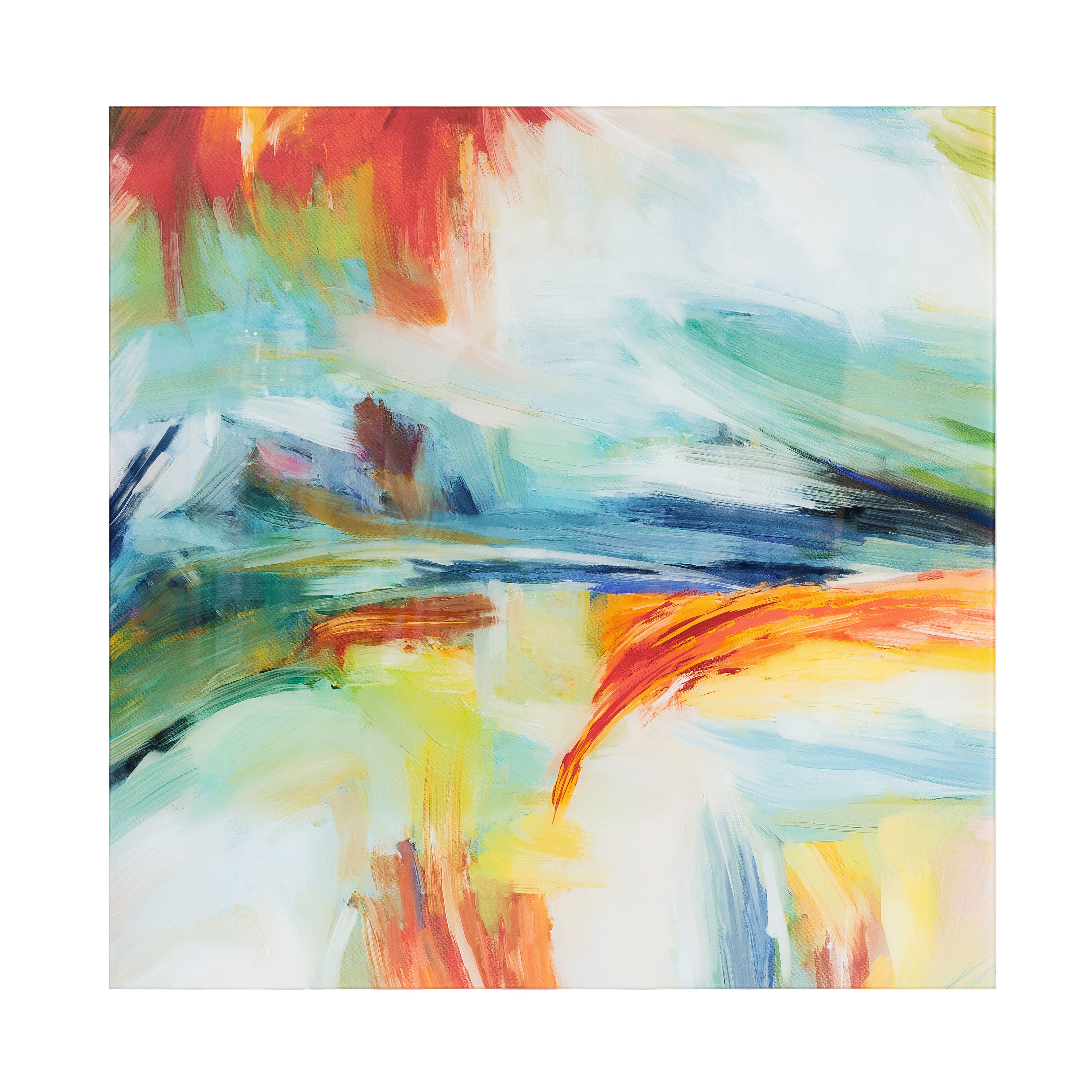 Elevate your space instantly with our Abstract Art Silk-Printed Glass Coffee Table! Its tabletop features vivid, dynamic colorful abstract patterns and fine beveled edges—making it a striking artistic focal point right away, while the smooth surface wipes clean easily, its balanced 35.4” W x 35.4” D x 11.8” H size fits seamlessly in living rooms or lounges, and with adjustable foot nails for optimal stability on any floor, this piece blends artistry and functionality perfectly to add a chic, modern vibe to your decor.